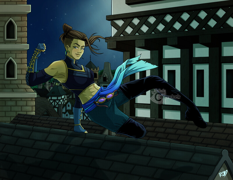 This Critical Role print illustrates Beau doing some of her best parkour moves! Printed on a heavy, matte paper that measures 8.5 x 11 inches. Prints are shipped in envelopes with chipboard backing to keep it flat in transit. Drawn by hand and digitally colored this poster print is the perfect addition to any Critter’s décor!