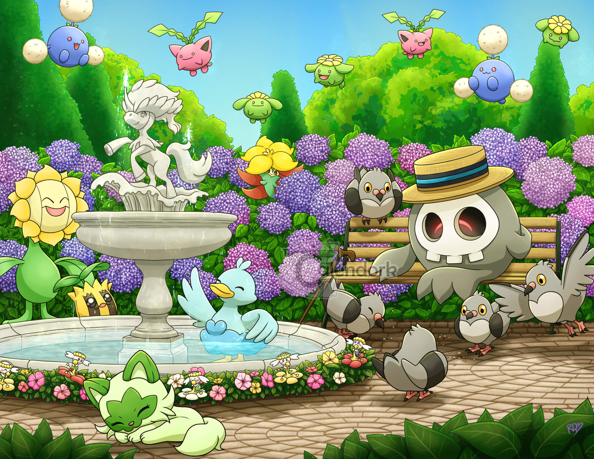 Take a stroll with Duskull through the park in this Pokémon artwork!